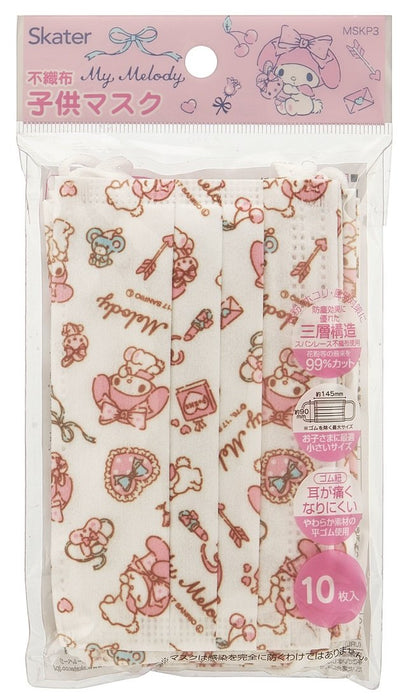 Skater My Melody Three-Ply Non-Woven Mask for Children and Women Pack of 10 Sanrio Mskp3